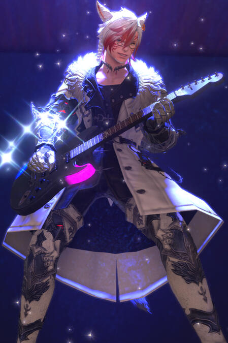 Slinging aether-infused lead by day and charming Materia with musical whimsy by night, Darax Ashenfall is a kind-hearted, roaming wild card with a fiery passion for music. A busy feline bard, Blue Mage commander, bartender and all-round loyal Endling, This blazing rose is more than happy to spend what little time he has left helping his fellow FC members and friends alike. No wonder he is a notorious MSQ procrastinator."Come witness the nightmare." - Darax Ashenfall